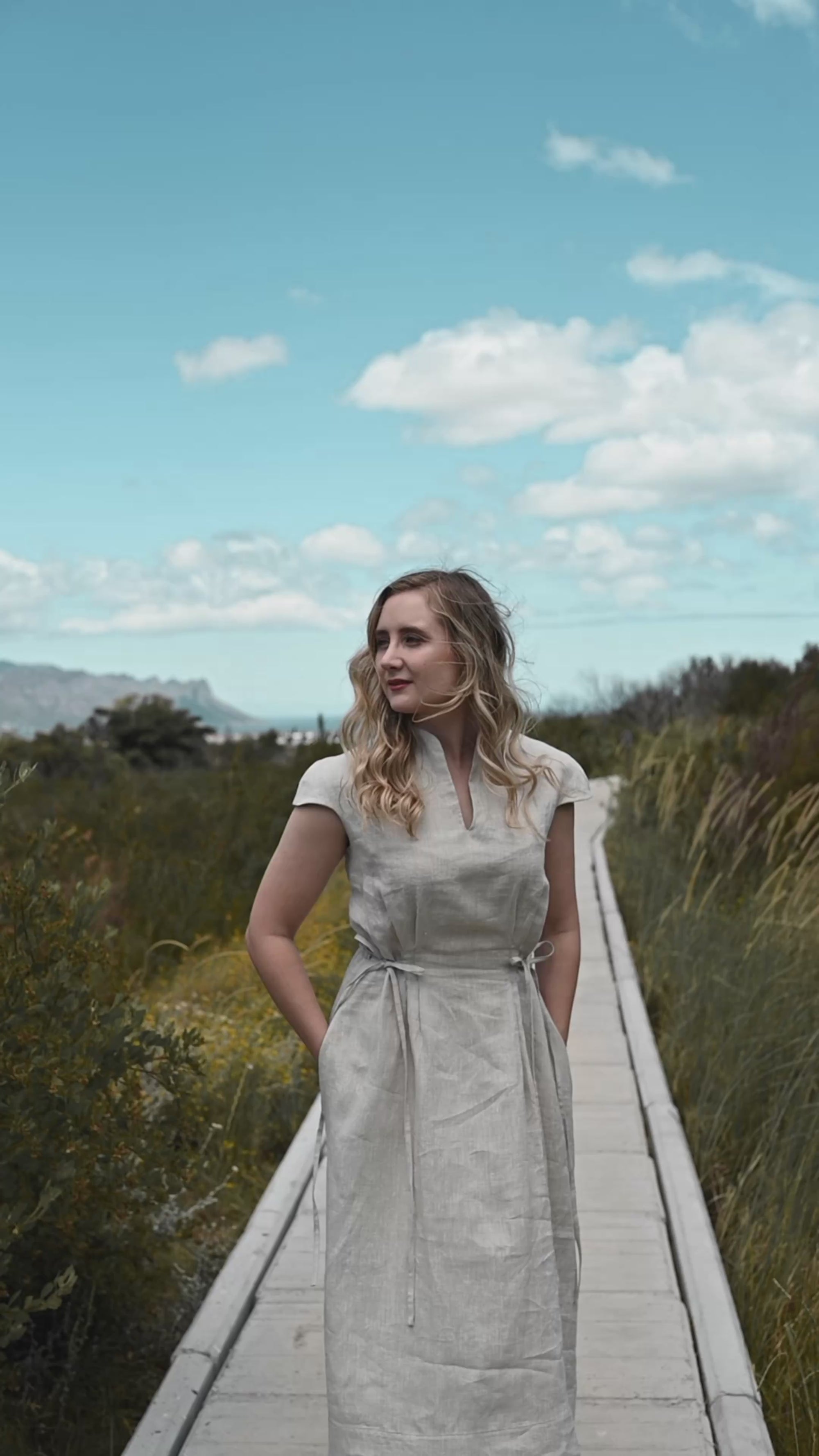 Pure Linen Cap Sleeve Dress | Natural